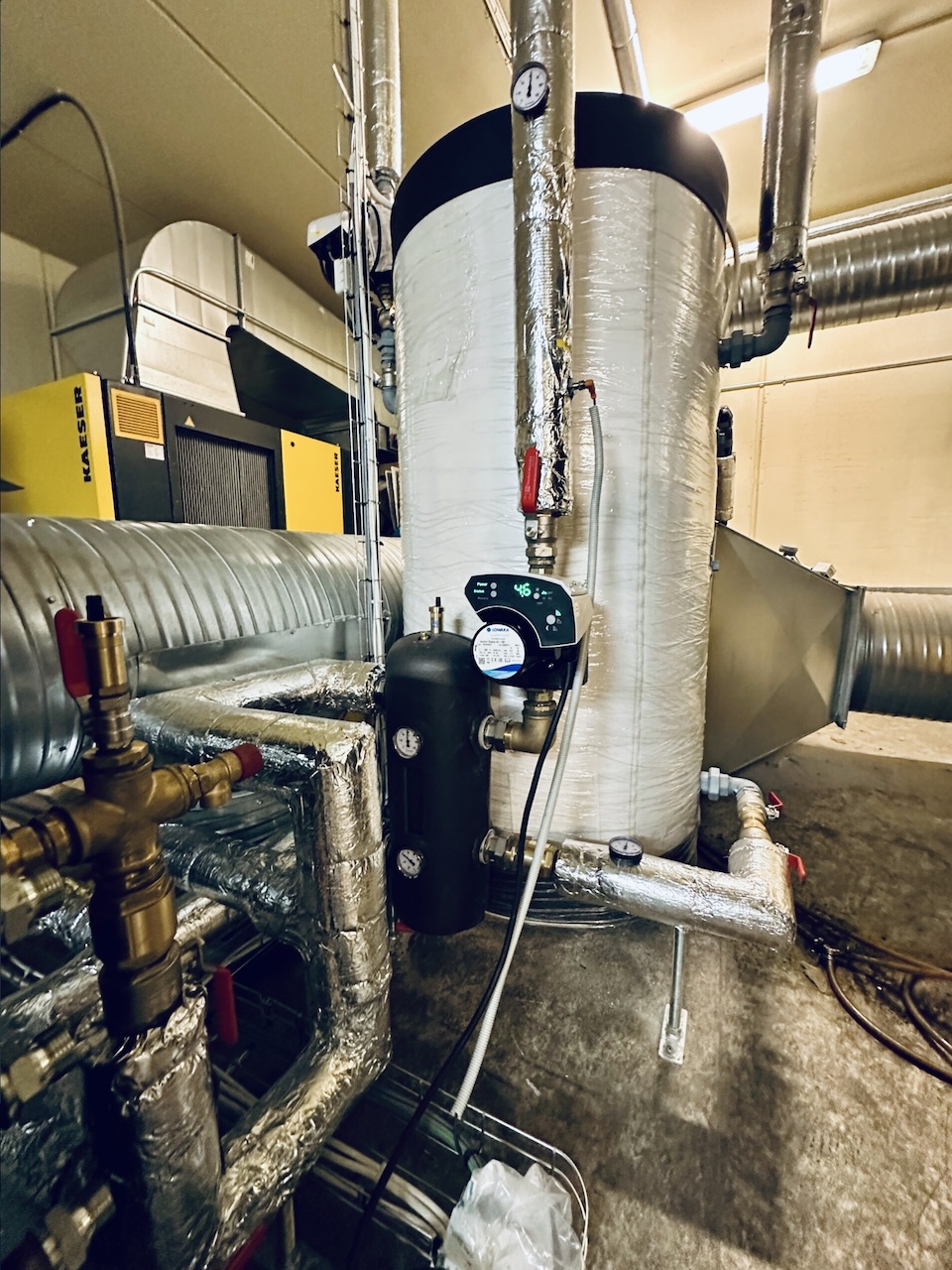 Pramonės įmonėje kompresoriai veikė kasdien, tačiau likutinė šiluma nebuvo naudojama. Tuo pat metu ištisus metus buvo šildymo poreikis, kurį tenkino katilas.